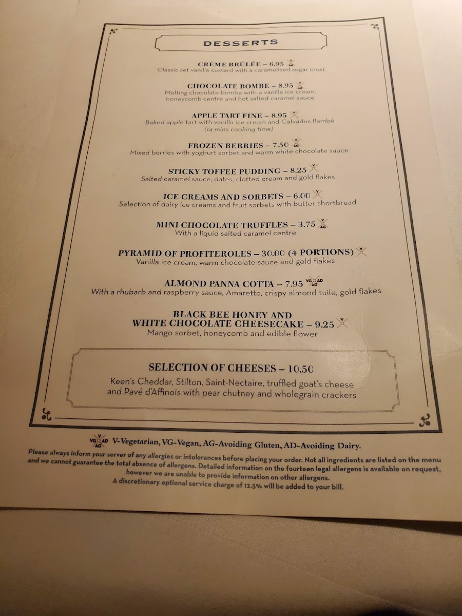 Cornish Yarg, Stilton, Saint-Nectaire, Melusine goat’s cheese and Camembert Le Fin with apple and apricot chutney and wholegrain crackers
